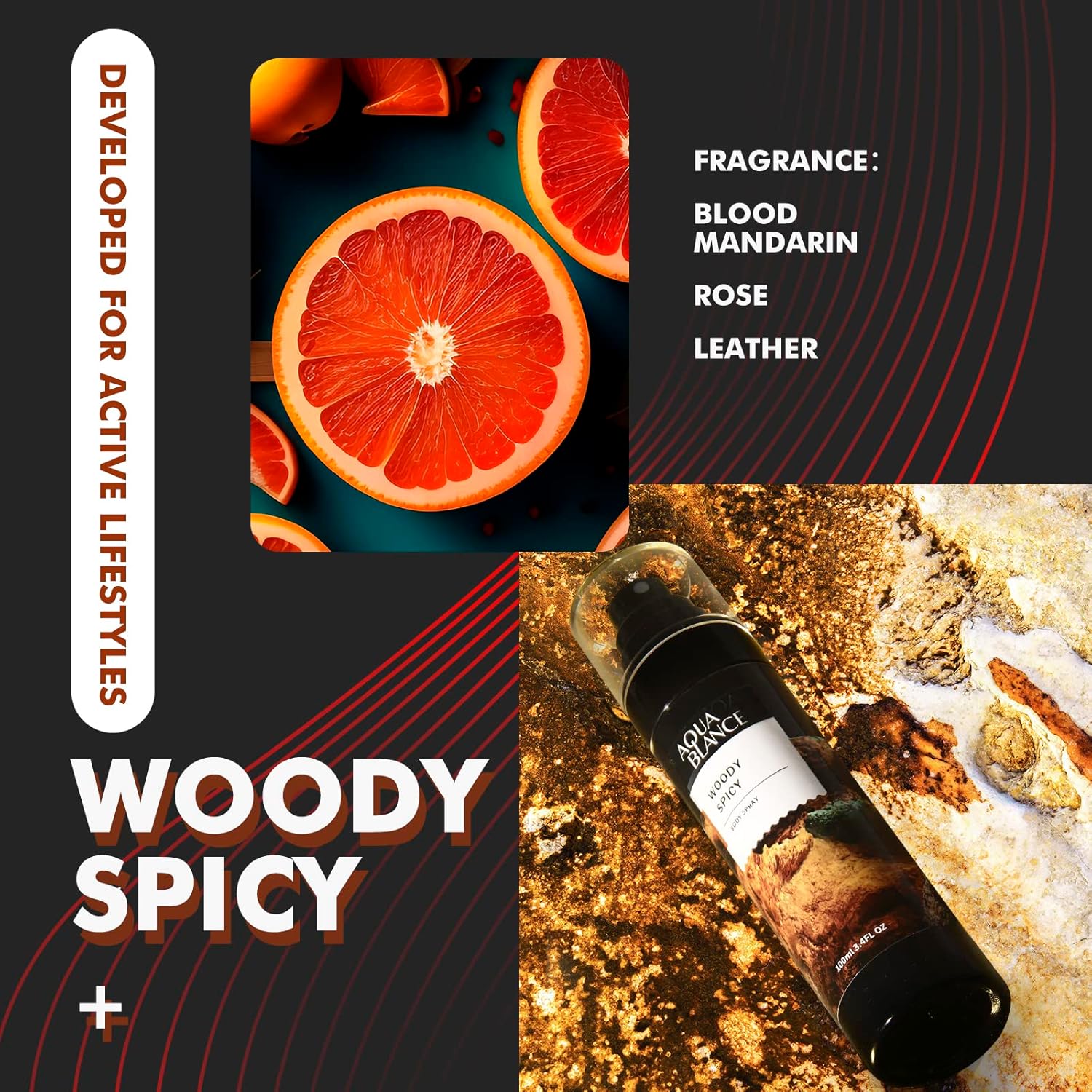- Woody Spicy fragrance: A bold blend of blood mandarin and peppermint balanced with warm rose, cinnamon, leather, and amber metal for a rich, captivating aroma.