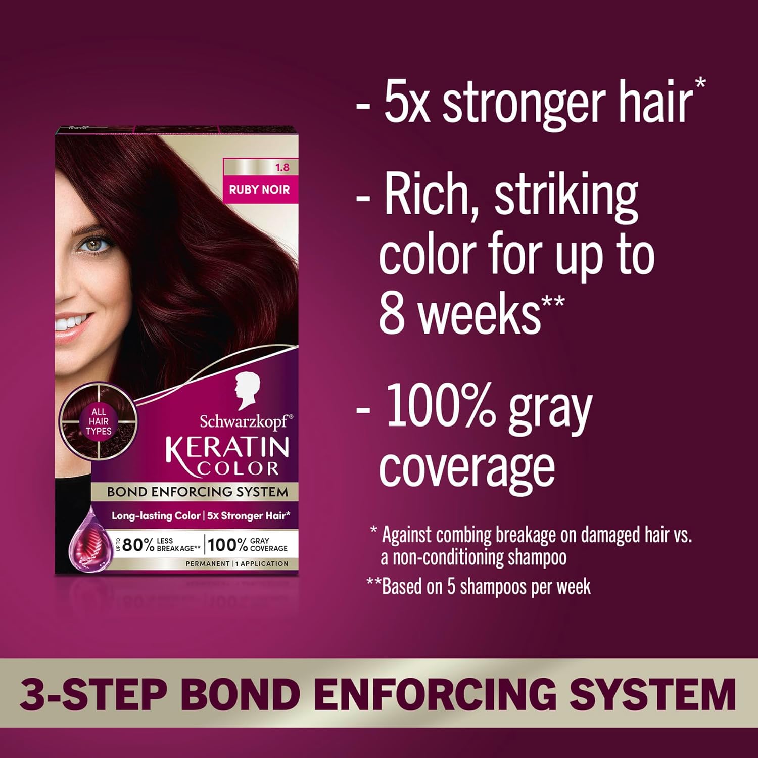 - 3-Step Bond Enforcing System: Strengthens hair from root to tip and reinforces bonds, leaving strands up to 5x stronger against combing breakage.