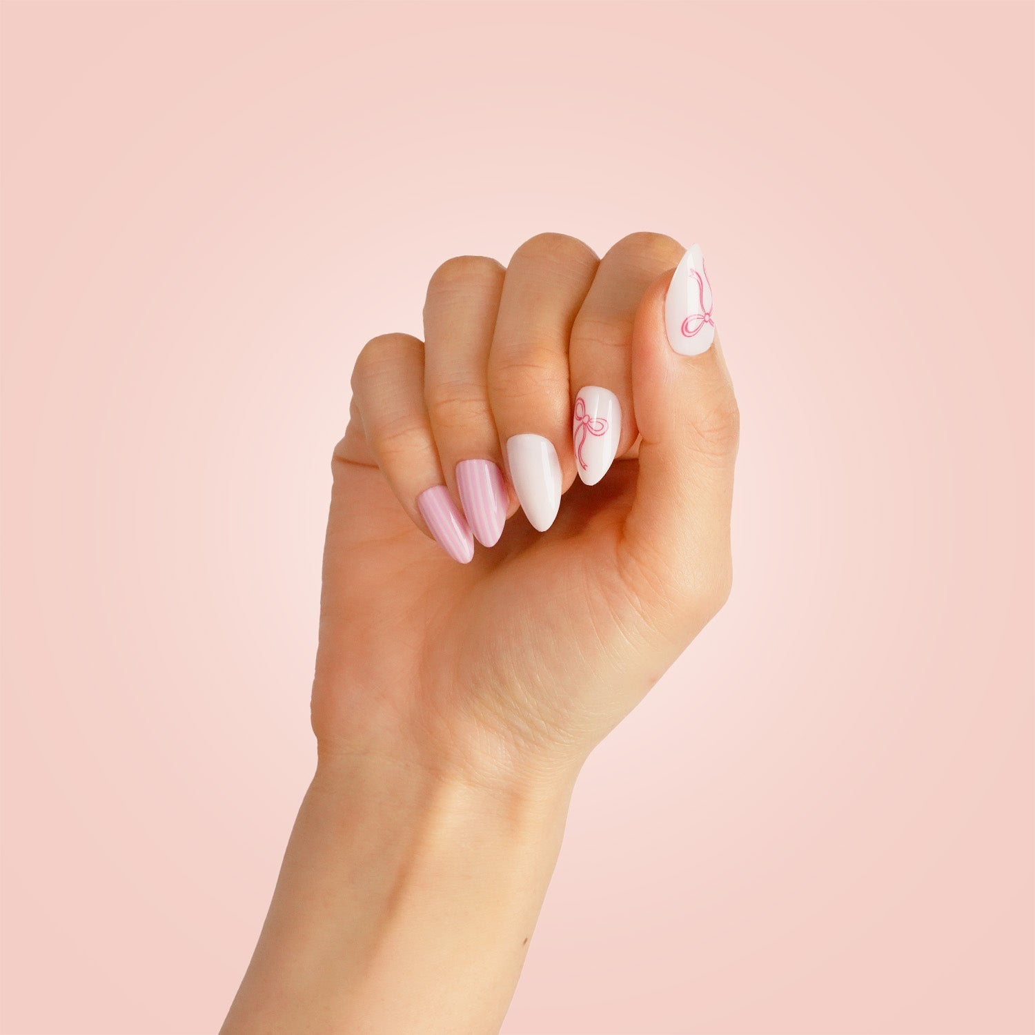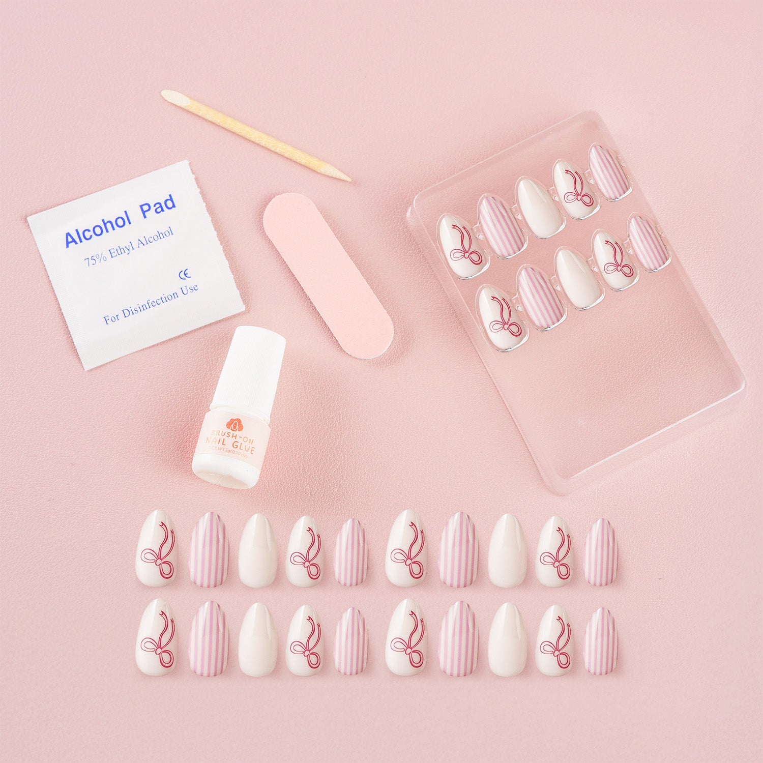 Get ready for a madly fun tea party with these cute Alice in Wonderland inspired press on nails! The set features adorable bows and pink stripes for a playful look. Perfect for any occasion, these nails will surely make you stand out and add some whimsy to your style.